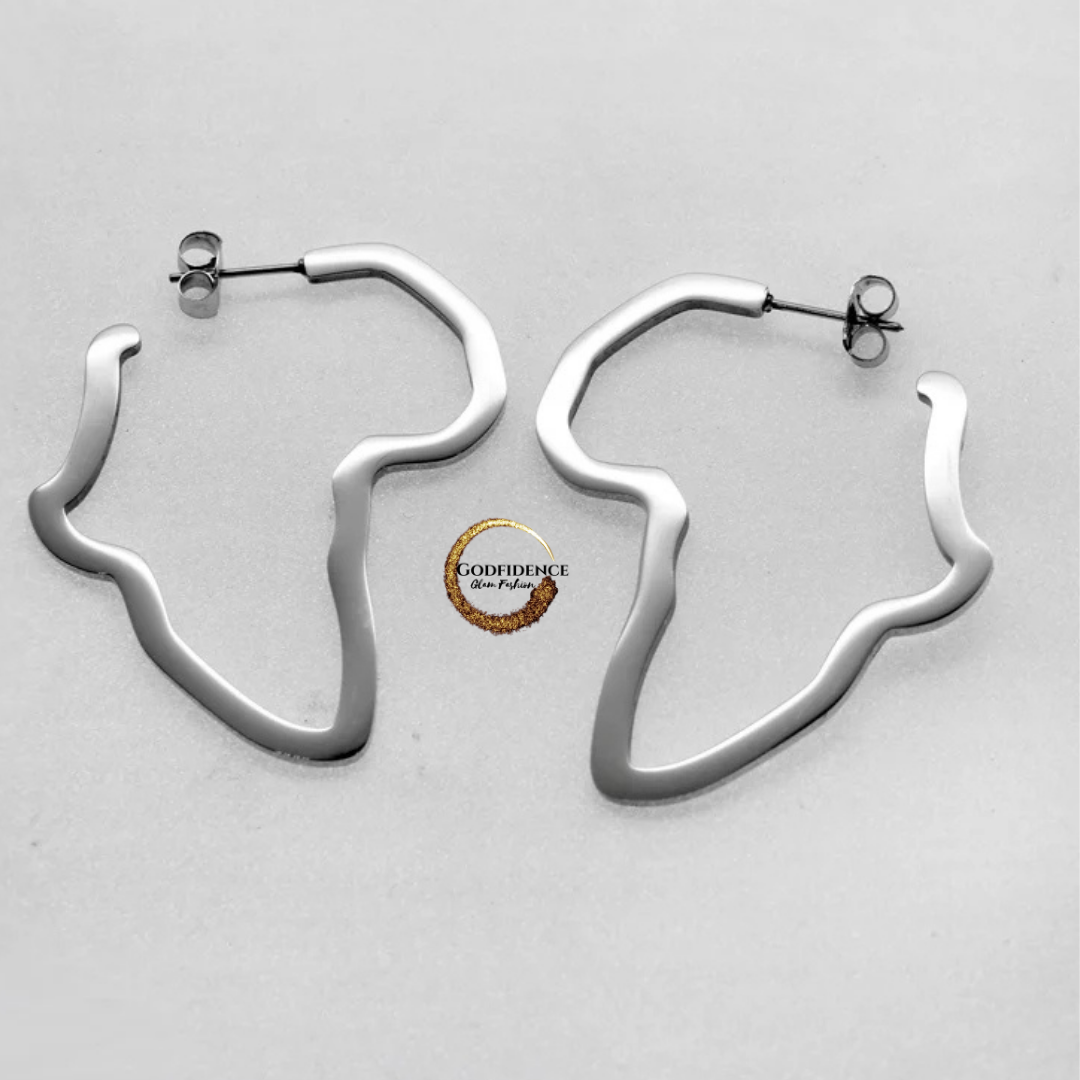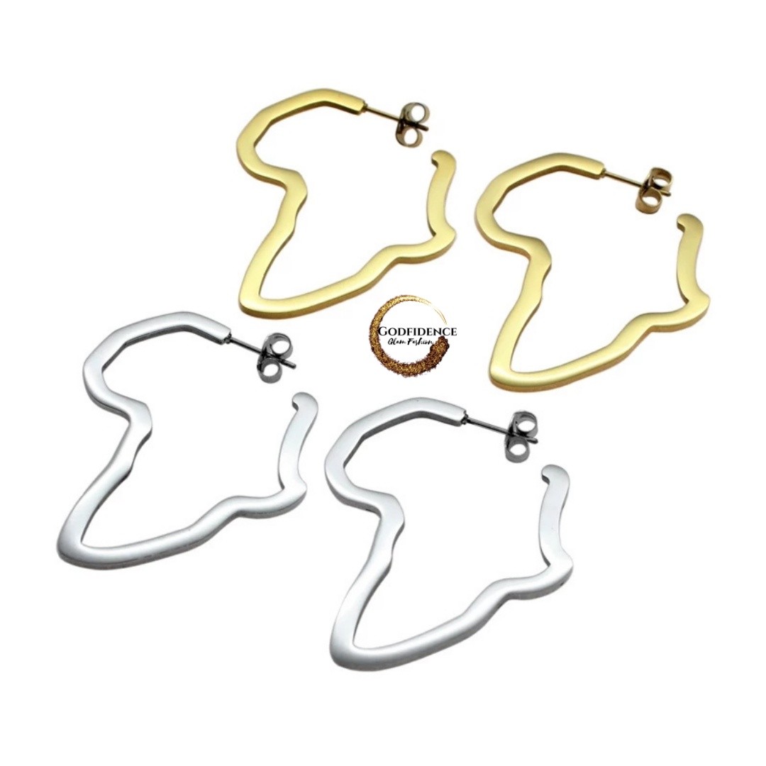 African Pride | Stainless Steel Africa Shaped Hoops